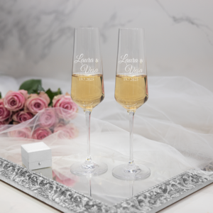 Kauniit kaiverretut viinilasit tai samppanjalasit ovat klassinen lahja pariskunnalle. Kun laseihin kaiverretaan nimet tai päivämäärä, niistä tulee ainutlaatuiset. Verkkokaupastamme löydät elegantteja viinilaseja, jotka toimivat sekä juhlissa että arjen piristäjinä.