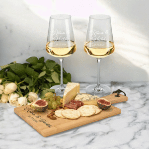 Onko pariskunnalla tapana loihtia ihania juustotarjottimia tai tapastarjoiluja? Siinä tapauksessa valkoviinilasit ja tarjoilulauta omalla, persoonallisella kaiverruksella on taatusti hitti lahja, joiden avulla tarjoilut on helppo viedä uudelle tasolle.