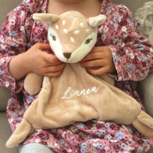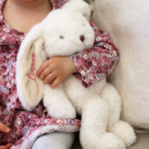 Mikä olisikaan suloisempi kastelahja kuin pupu omalla kirjailulla. Pupuun voidaan kirjailla vaikkapa lapsen nimi ja syntymäaika. Tässä linkki tuotteeseen: Pupupehmolelu