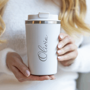 Termosmuki nimellä on edullinen mutta ajatuksella valittu lahja. Personointi työntekijän nimellä tai yhteisellä viestillä luo yhteenkuuluvuutta ja tekee jokaisen kahvihetkestä erityisen.