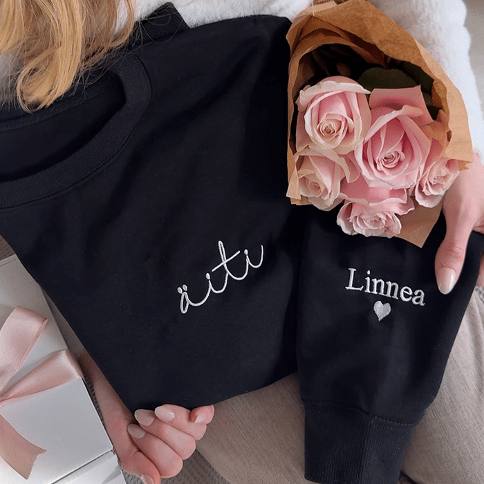 Tyylikäs collegepaita omalla kirjailulla on täydellinen yksilöity ja käytännöllinen lahja esimerkiksi äidille tai mummille. Kirjoita vain haluamasi teksti rintaan sekä hihaan ja collegepaita on valmis tilattavaksi.