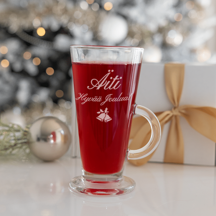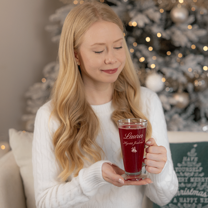 Nimikoitu glögilasi on ihana lahjaidea jouluun. Höyryävän kuuma glögi nimikoidusta lasista suorastaan kutsuu nauttimaan ja fiilistelemään Joulun tunnelmaa. Hanki tästä siis vaikka ihana joululahja äidille, joululahja puolisolle, joululahja ystävälle tai vaikka ihan itselle. Tästä myös mahtava vieminen isäntäperheelle joulunviettoon.