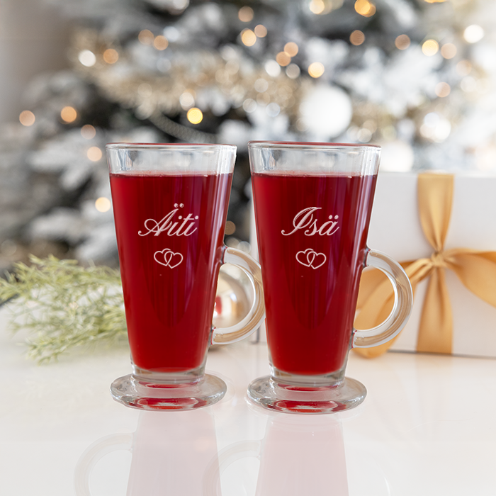 Nimikoidut glögilasit on ihana lahjaidea jouluun. Höyryävän kuuma glögi nimikoidusta lasista suorastaan kutsuu nauttimaan ja fiilistelemään Joulun tunnelmaa. Hanki tästä siis vaikka ihana joululahja äidille ja isälle.