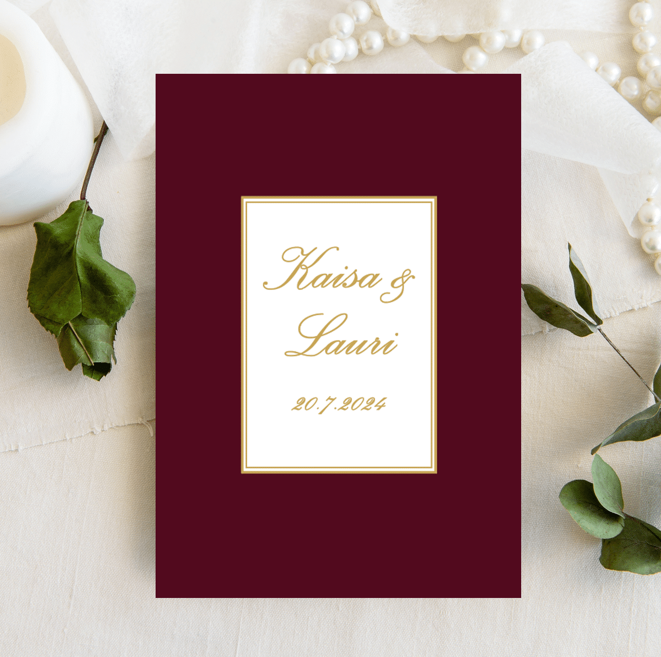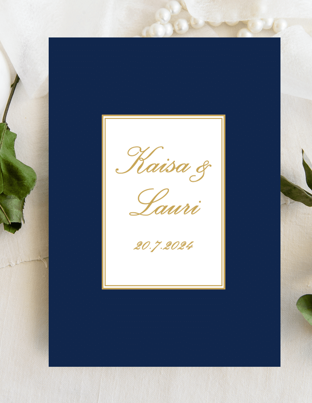 Valmis hääkutsumalli omilla teksteilläsi on vaivaton keino luoda kauniit hääkutsut. Tässä hääkutsumallissa voit täysin itse päättää taustan värin juuri omien häidesi teeman mukaisesti. Voit liittää kuvan väristä jo tilausvaiheessa tai voit sopia väristä vasta tekstien toimittamisen yhteydessä. Huom. kutsussa ei ole kultafoliointia.