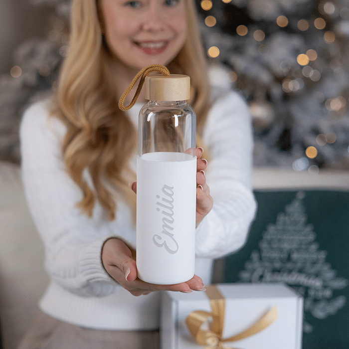 Nimikoitu juomapullo on sekä henkilökohtainen, mutta myös käytännöllinen lahjaidea.