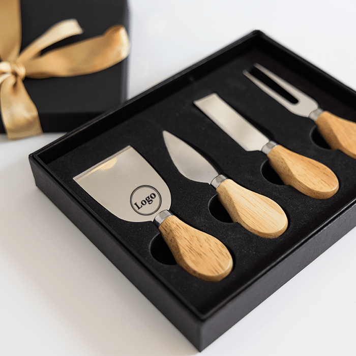 Tämä tyylikäs juustoveitsi -setti on täydellinen esimerkiksi joululahjaksi asiakkaille, työntekijöille tai yhteistyökumppaneille.