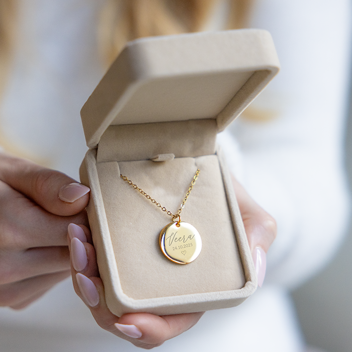 Nimellä ja päivämäärällä kaiverrettu kaunis klassisen mallinen koru sopii täydellisesti tärkeiden merkkipäivien juhlistamiseen. Voit ottaa mallia valmiista kaiverrusideoista tuotekuvista tai keksiä aivan omasi. Koru on valmistettu ruostumattomasta teräksestä, joka on kestävä ja näyttävä materiaali.