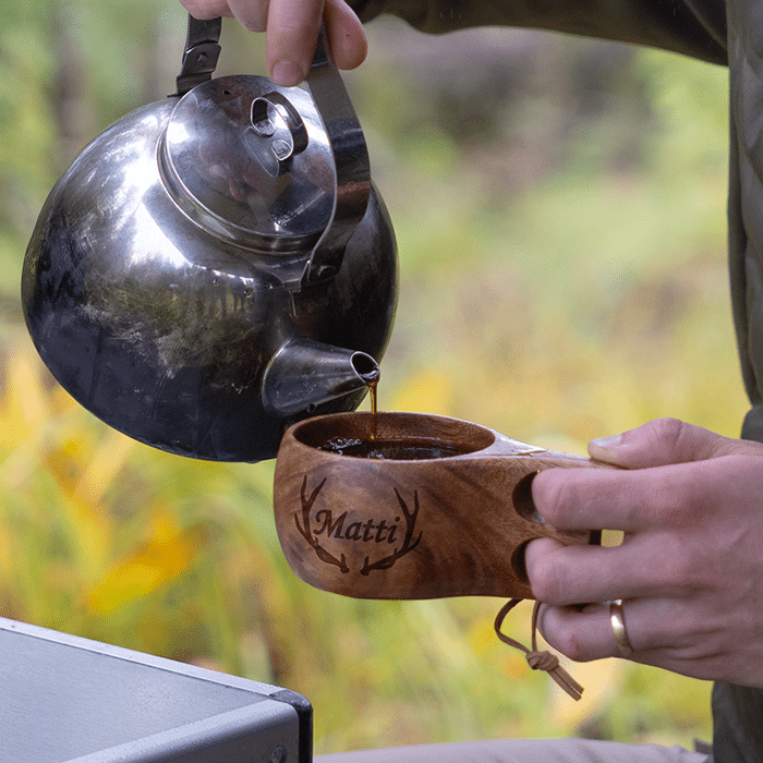 Oma personoitu kuksa kaiverruksella on täydellinen lahja metsästäjälle, eränkävijälle tai luonnossa liikkujalle. Perinteinen pohjoismainen juoma-astia yhdistyy yksilölliseen kaiverrukseen, joka tekee siitä ainutlaatuisen ja henkilökohtaisen.