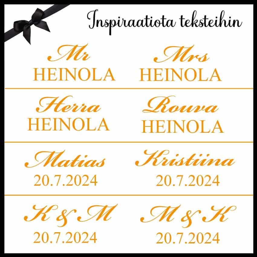 Ehdottomasti! Teemme myös yksilöityjä kaiverruksia/kirjailuja, joita voidaan suunnitella asiakkaan kanssa yhdessä. Olethan tällöin yhteydessä meihin osoitteeseen tilaukset@yni.fi. Voit myös lukea vielä tarkempaa tietoa suunnittelupalvelustamme täältä.
