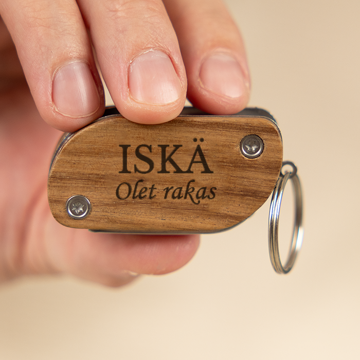 Monitoimityökalu kaiverruksella on hauska että käytännöllinen lahjaidea jokaiselle tee-se-itse -miehelle tai kodin remppareiskalle. Tästä myös mitä loistavin isänpäivälahja!