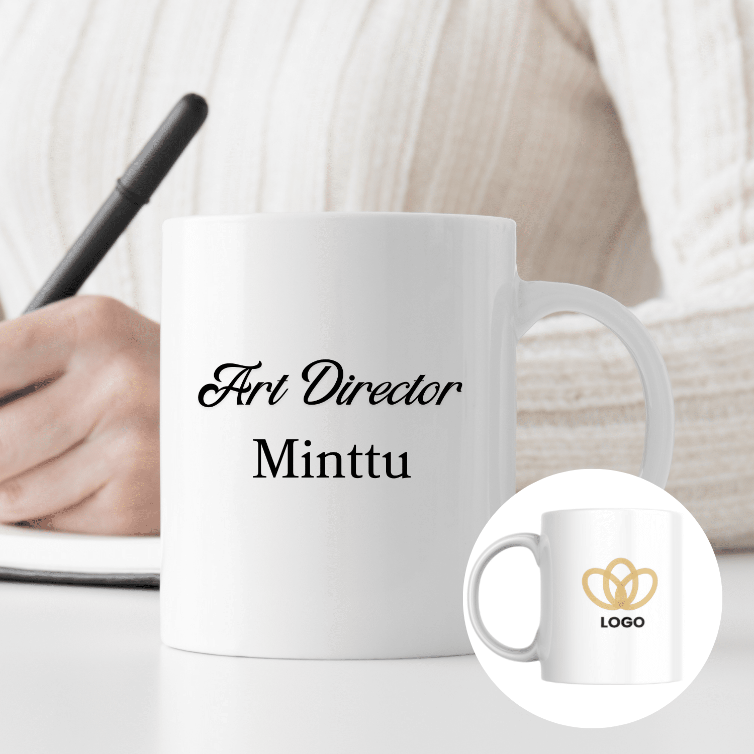 Muki logolla ja tekstillä