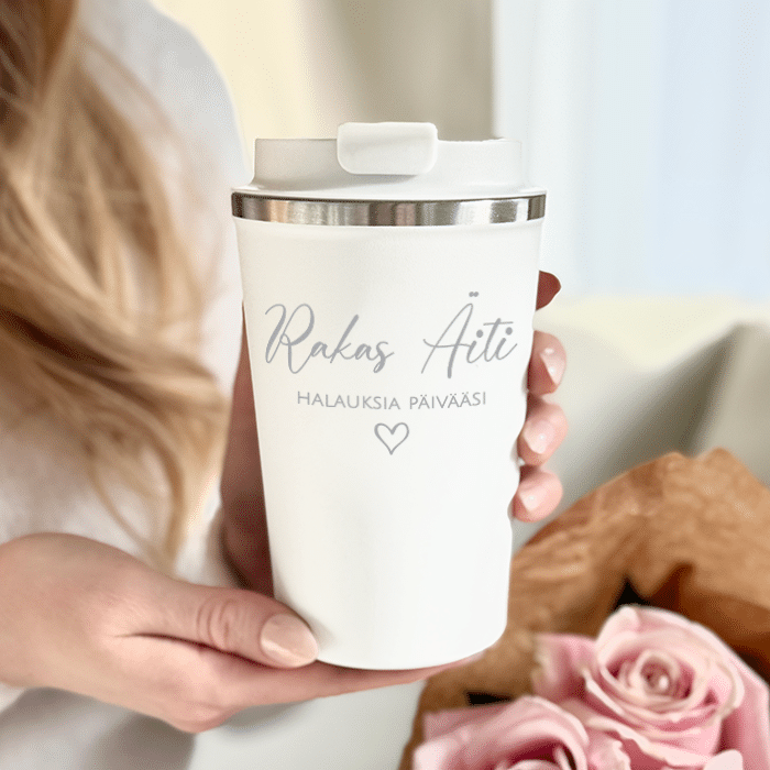 Termosmuki kaiverruksella, äitienpäivälahja