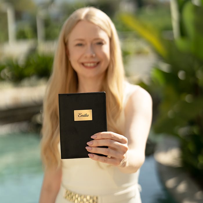 Passikotelo nimellä on juuri oikea valinta lahjaksi matkustelusta nauttivalle puolisolle, vanhemmalle tai vaikkapa ystävälle. Tässä myös hauska tapa yllättää vaikkapa matkalahjan yhteydessä. Musta kotelo kultaisella kaiverruskilvellä on kaunis kokonaisuus ja tätä koteloa kelpaa kuljettaa mukana reissussa ja nappailla lentokentällä kuvat ennen koneen lähtöä.