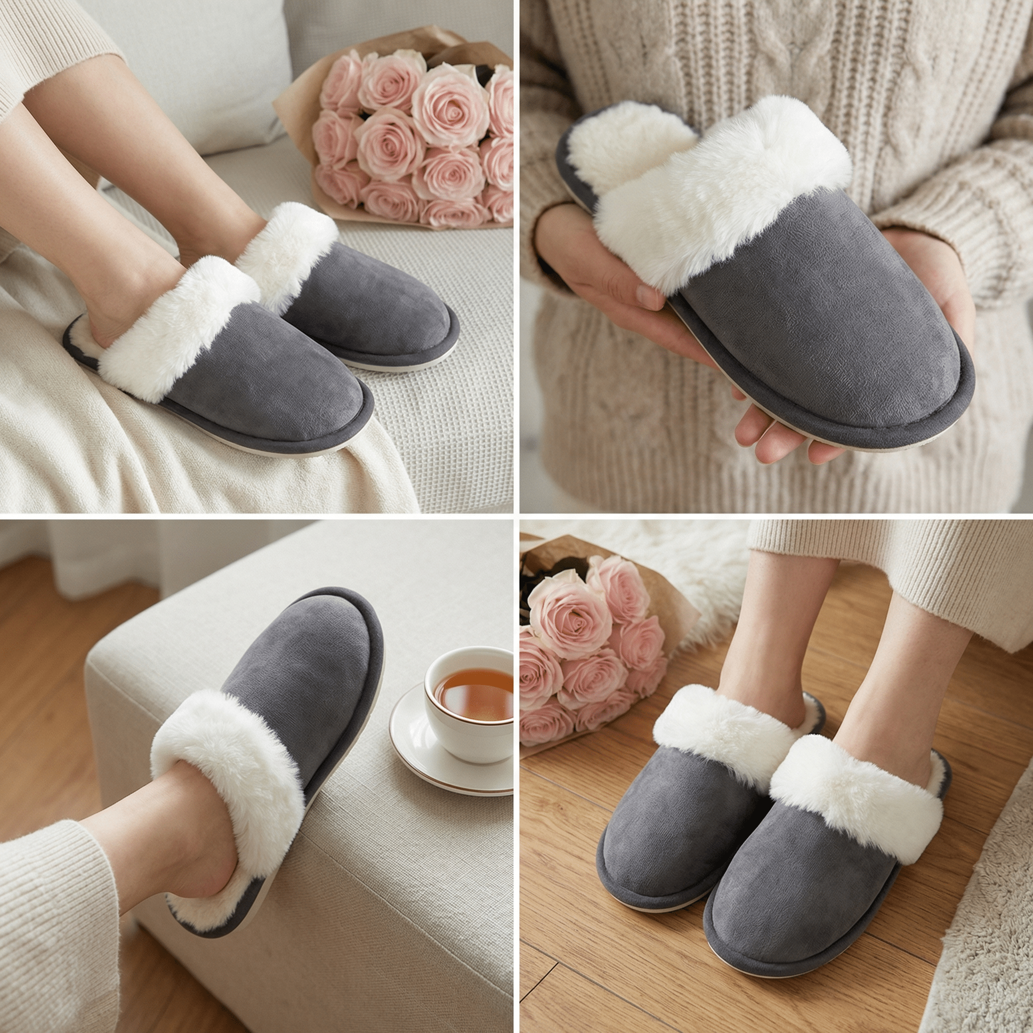 Nämä harmaat pehmoiset aamutohvelit ovat täydellinen lahja vaikkapa äidille tai puolisolle, joka ansaitsee ripauksen hemmottelua. Pehmeä karvainen pinta ja sisältä löytyvä ihana, lämpimästi syleilevä tekoturkisvuori tekevät näistä tohveleista lahjan, joka tulee taatusti käyttöön.
