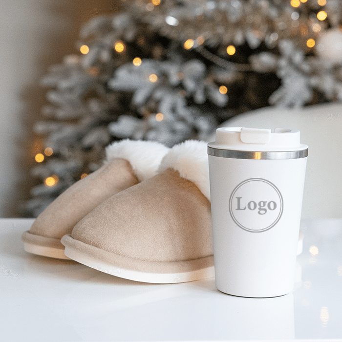 Tohvelit pitävät jalat lämpiminä viileinä aamuina ja rentouttavina iltoina, kun taas termosmuki varmistaa, että kahvi tai tee pysyy kuumana kiireisissäkin hetkissä. Termosmuki voidaan viimeistellä yrityksesi logolla, jolloin lahja saa yksilöllisen ja ammattimaisen ilmeen.
