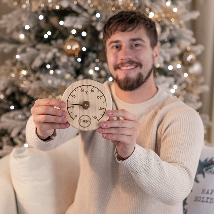 Männystä valmistettu puinen saunamittari logolla on taatusti mitä parhain lahjaidea jokaiseen suomalaiseen kotiin ja mökeille. Tässä hyvä lahjaidea asiakkaalle tai omalle henkilöstölle. Kaiverrus on merkintätapana pysyvä eikä se siten kulu tai haalistu pois.
