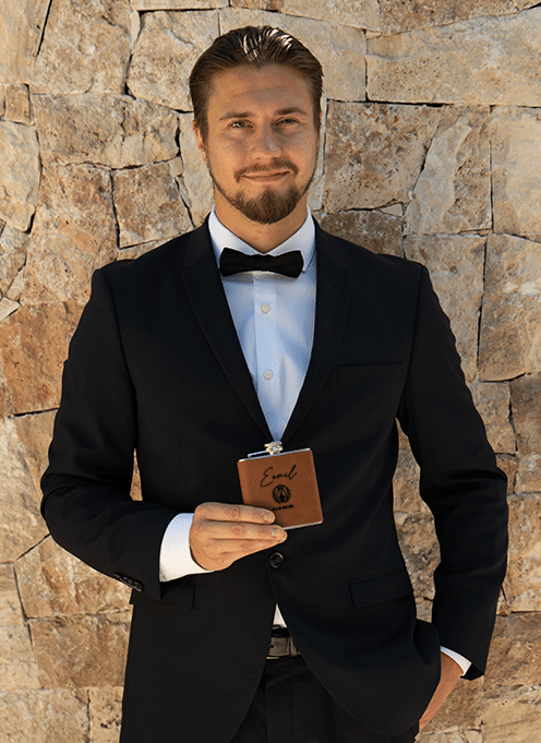 Taskumatti toimitetaan mustassa lahjapakkauksessa, joten lahja on tarvittaessa heti valmis annettavaksi. Viimeistele lahjapaketti halutessasi tarralla, johon voit valita kirjoituksen. Huom. Teemme kaiverruksesta mahdollisimman vastaavan sijoittelultaan kuin kuvassa. Tämä tarkoittaa sitä, että You Name It varaa oikeuden pieniin muutoksiin.