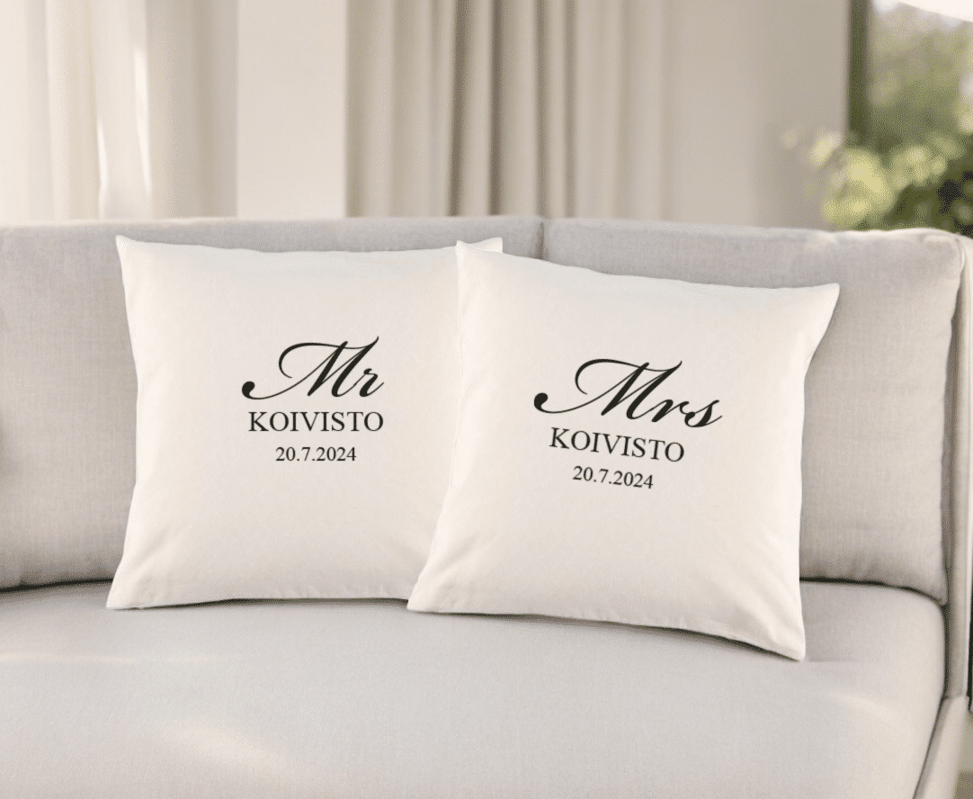 Mr ja Mrs -tyynynpäälliset nimillä