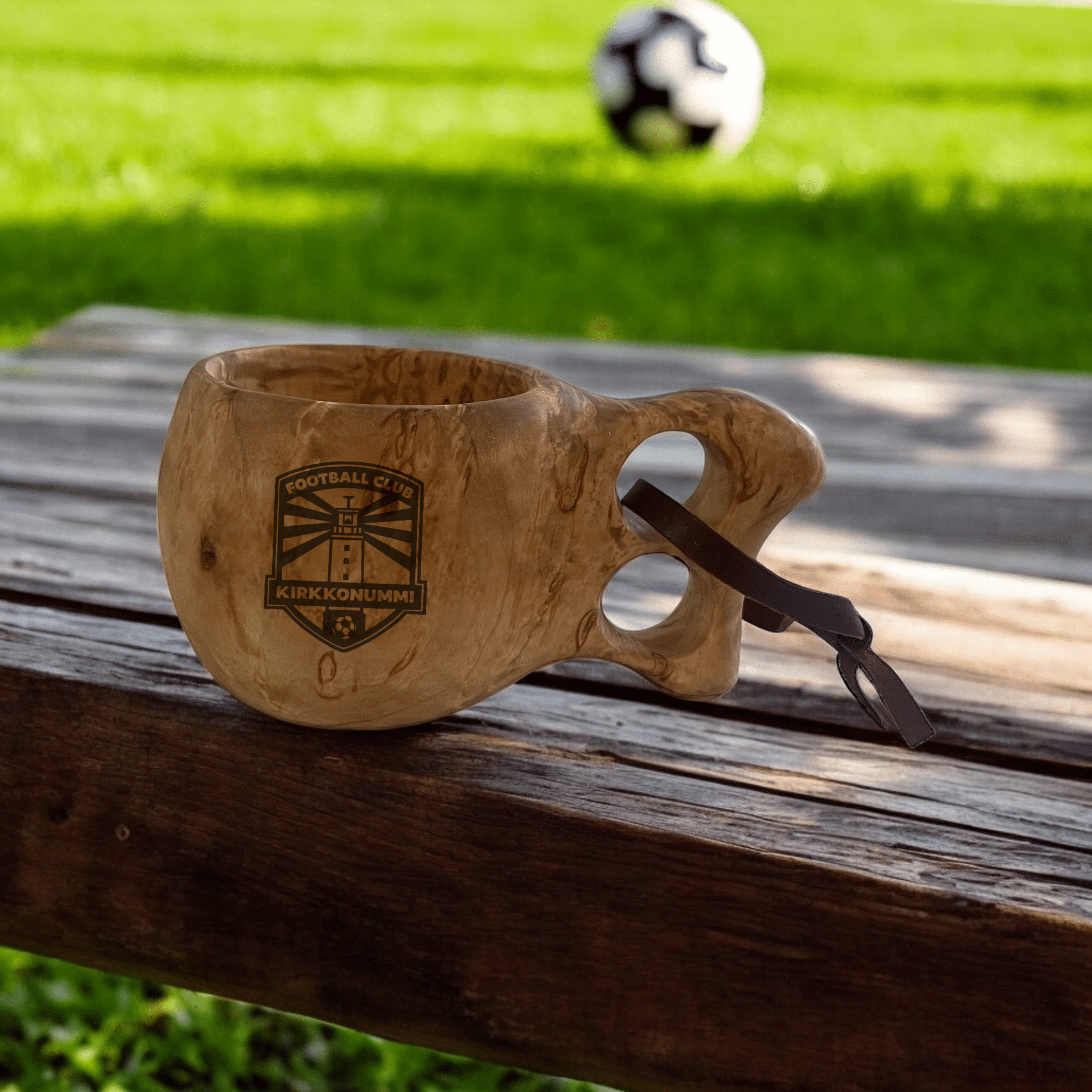 Kuksaan kuuluu myös joukkueen logon kaiverrus ja tuote toimitetaan valmiissa lahjasellofaanissa. Visakoivukuksa soveltuu niin käyttöön kuin kauniiksi koriste-esineeksikin. Kuksassa on käytännöllinen nahkalenkki, josta kuksan voi ripustaa kätevästi vaikkapa rinkkaan, reppuun tai naulaan.