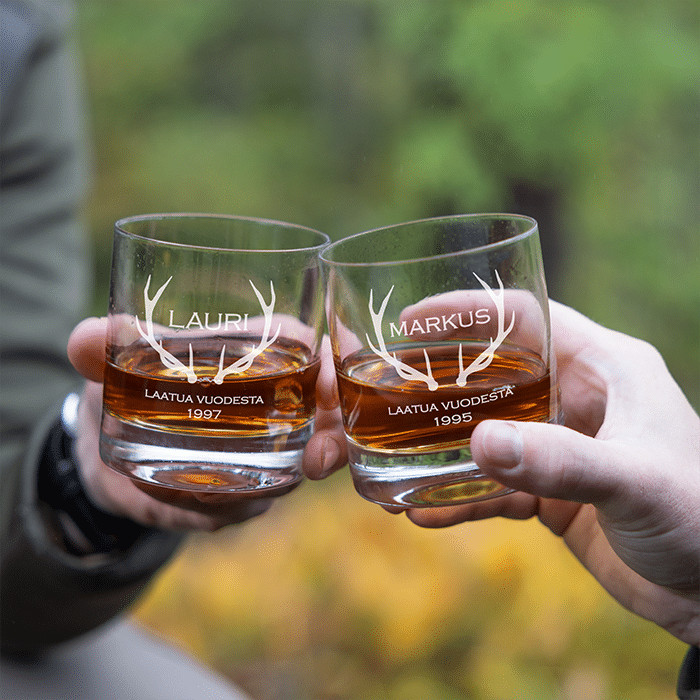 Mikä olisikaan parempi lahja viskin ystävälle kuin viskilasi kaiverruksella ja sopisiko kylkeen kenties pullo lahjansaajan lempiviskiä? Tässäpä esimerkiksi mitä mainioin lahja miehelle joka täyttää vuosia. Lahjasta jää ihana muisto, sillä kaiverrus on ikuinen ja kestää konepesun.